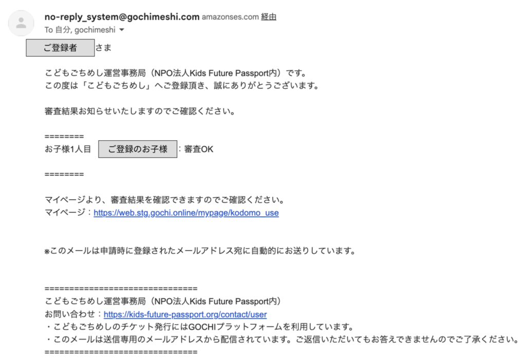 ◆ 件名:【こどもごちめし】審査結果のお知らせ