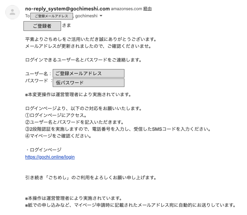 ◆ 件名:【ごちめし】マイページメールアドレス更新のお知らせ