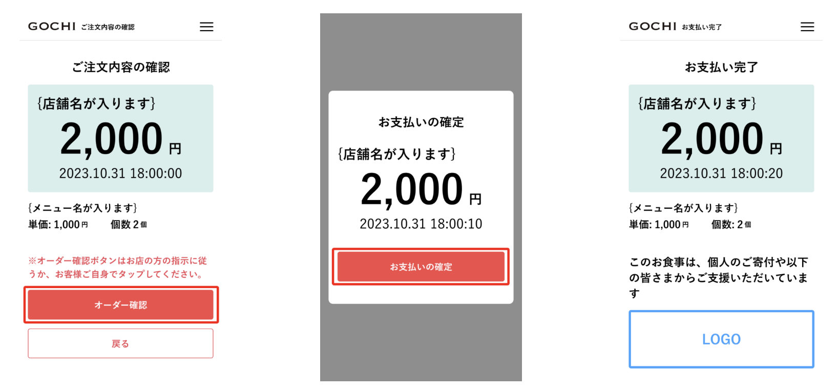 ここからはお店の人と一緒に、店舗名・金額に誤りがないか確認をしていただきながら、最後の「お支払い完了」画面まで進めてください。